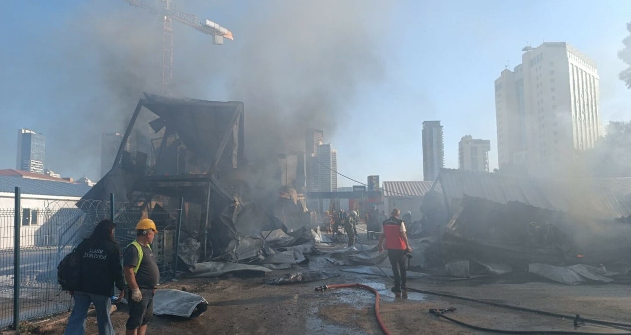 İzmir Bayraklı’daki bir inşaat şantiyesinde çıkan yangın, park halindeki 2 otomobile de sıçradı; itfaiye ekipleri yangını kısa sürede kontrol altına aldı.